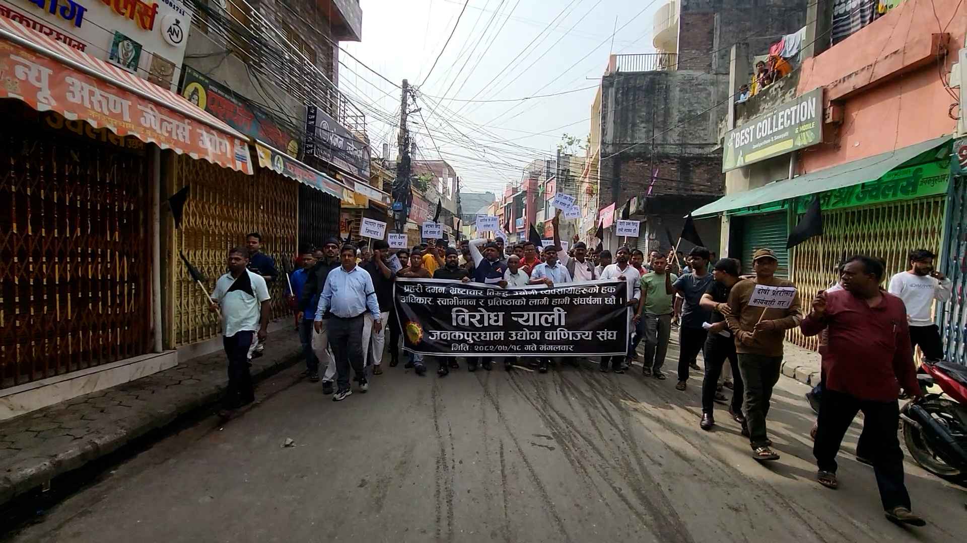 उनीहरुले प्रहरी दमन बन्द गर, व्यापारी एकता जिन्दावाद, गैर कानुनी तरीकाले व्यापारीलाई लुट्न पाईँदैन, धनुषाका डिएसपी मुर्दाबाद लगायतका नारा लगाउँदै नगर परिक्रमा गरेका छन् ।