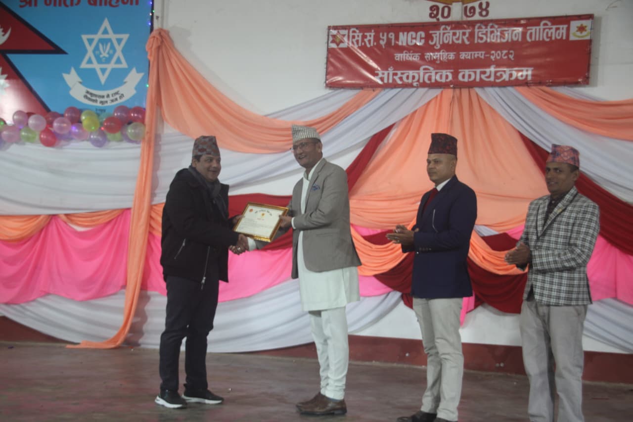 समारोहमा राष्ट्रिय सेवा दल, पूर्वी तालिम शिक्षालयका प्रमुख सेनानी सुरेशकुमार श्रेष्ठले क्याडेटहरूलाई राष्ट्रिय झण्डा र सेवा दलको झन्डासहित शुभकामना सन्देश दिनुका साथै शपथ ग्रहण गराएका थिए ।