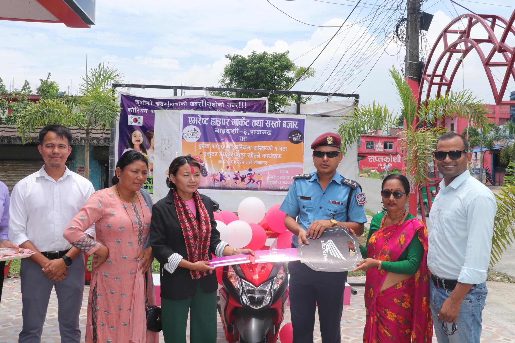 ‘एभरेष्ट हाइपर मार्केट’ले कचनकवल निवासी सुनिता राईलाई उपहार स्वरुप एक थान स्कूटर प्रदान गरेको छ । मार्केटले सञ्चालन गरेको लक्की ड्र कार्यक्रममा सहभागी बनेकी राईलाई उपहारमा स्कूटर परेपछि हिरो होण्डा ब्राण्डको एक थान स्कूटर प्रदान गरिएको हो । उपहारमा पाएको स्कूटर र स्कूटरको चाबी गाउँपालिकाकी उपाध्यक्ष शान्ता शिवाकोटी खरेलले हस्तान्तरण गरेकी थिइन् ।