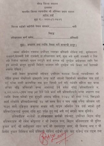 विराटनगर/ विराटनगर महानगरपालिका–९ मा रहेको ग्रीनक्रस अस्पतालबाट शिशु बिक्री गरिएको घटनासँग सम्बन्धित मुद्दामा ३ जना कारागार चलान भएका छन् । जिल्ला अदालत मोरङले बुधबार चिकित्सकसहित ३ जनालाई पुर्पक्षका लागि थुनामा राख्न आदेश दिएको हो ।