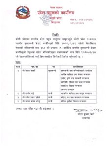 मन्त्रीहरुलाई विभागीय जिम्मेवारी दिन मुख्यमन्त्री कार्कीले शनिबार प्रदेश प्रमुखलाई सिफारिस गरेका थिए । उनको सिफारिस अनुसार आज प्रदेश प्रमुख परशुराम खापुङले जिम्मेवारी तोकेका हुन् ।