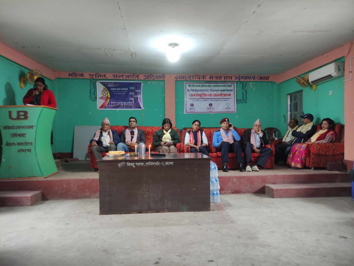 सरोकार केन्द्रकी अध्यक्ष लक्ष्मी न्यौपाने सरुको अध्यक्षतामा भएको अन्तरक्रिया कार्यक्रममा संवधानसभा सदस्य तथा पूर्वस्वास्थ्य राज्यमन्त्री धर्मशीला चापागाँईको प्रमुख आतिथ्य रहेको थियो ।