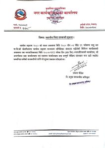 बुधवार नगरपालिकाको मातहत रहेका सम्पूर्ण स्थानीय तह, शिक्षण संस्था र निकायहरूमा बिदा रहनेछ । सङ्घीय सरकार अन्तर्गत रहेका अन्य कार्यालय खुल्ला रहने बताइएछ ।