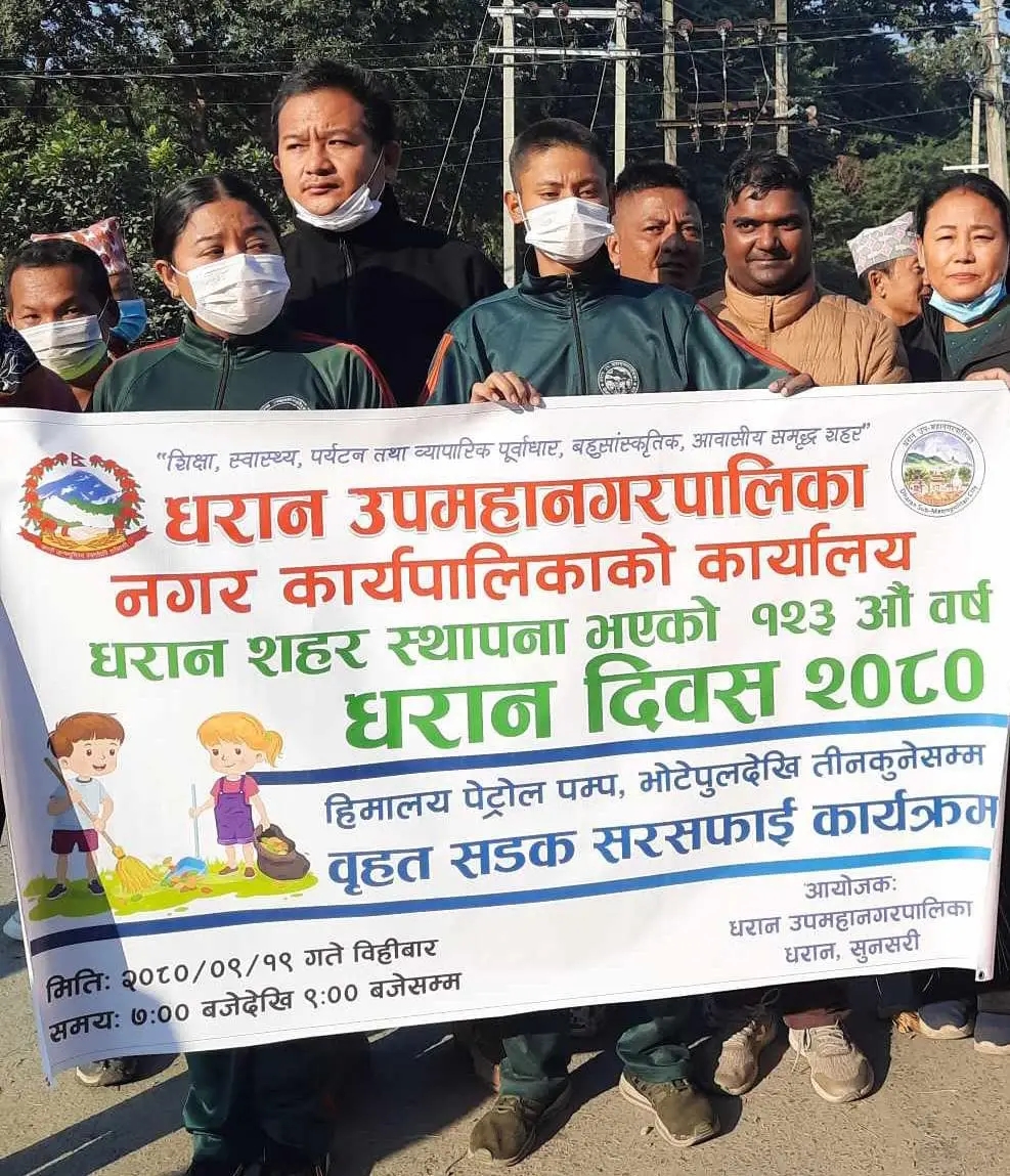 बिहीबार ‘शिक्षा, स्वास्थ्य, पर्यटन तथा व्यापारिक पूर्वाधार, बहुसाँस्कृतिक, आवासीय समृद्ध सहर’ भन्ने नारा सहित धरान स्थापना भएको १२३ औँ अवसरमा उपमहानगरपालिकाको आयोजनामा हिमालय पेट्रोल पम्प भोटेपुल देखी तीनकुनेसम्म वृहत् सरसफाइ अभियान गरिएको हो ।