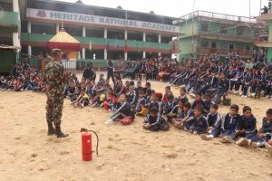 हेरिटेज नेश्नल एकेडेमीमा समेत तालिम प्राप्त सैनिकहरूबाट सचेतना कार्यक्रम सञ्चालन गरिएको छ । ग्यासका कारण आगलागी भएमा सहजै घरायसी औजार प्रयोग गरेर आगो नियन्त्रण गर्न सकिने बताइएको छ । सुरुमा नै देखे दुर्घटनाबाट कम क्षति हुने बताइएको छ । नआत्तिईकन पहिला ग्यासलाई बन्द गर्न लाग्नु पर्ने बताइएको छ । त्यस्तै घरमा आगलागी भएमा समेत सचेत भएर आगलागी नियन्त्रण गर्न सकिने कार्यक्रममा जानकारी गराइएको छ ।