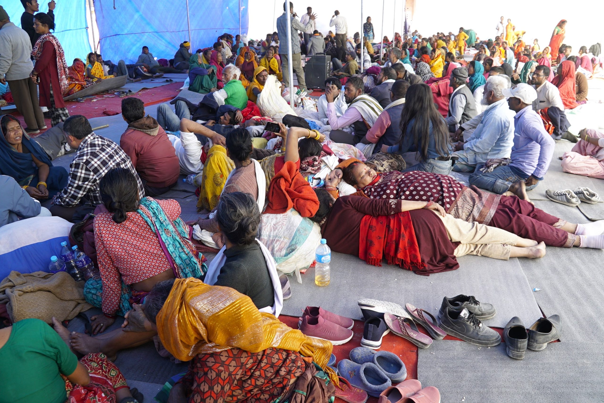 दिउँसो होस् वा राति, भृकुटीमण्डपमा एउटै त्रिपालभित्र चिसो भुँइमा पल्टिएर थकान मेटाइरहेका छन् उनीहरू ।