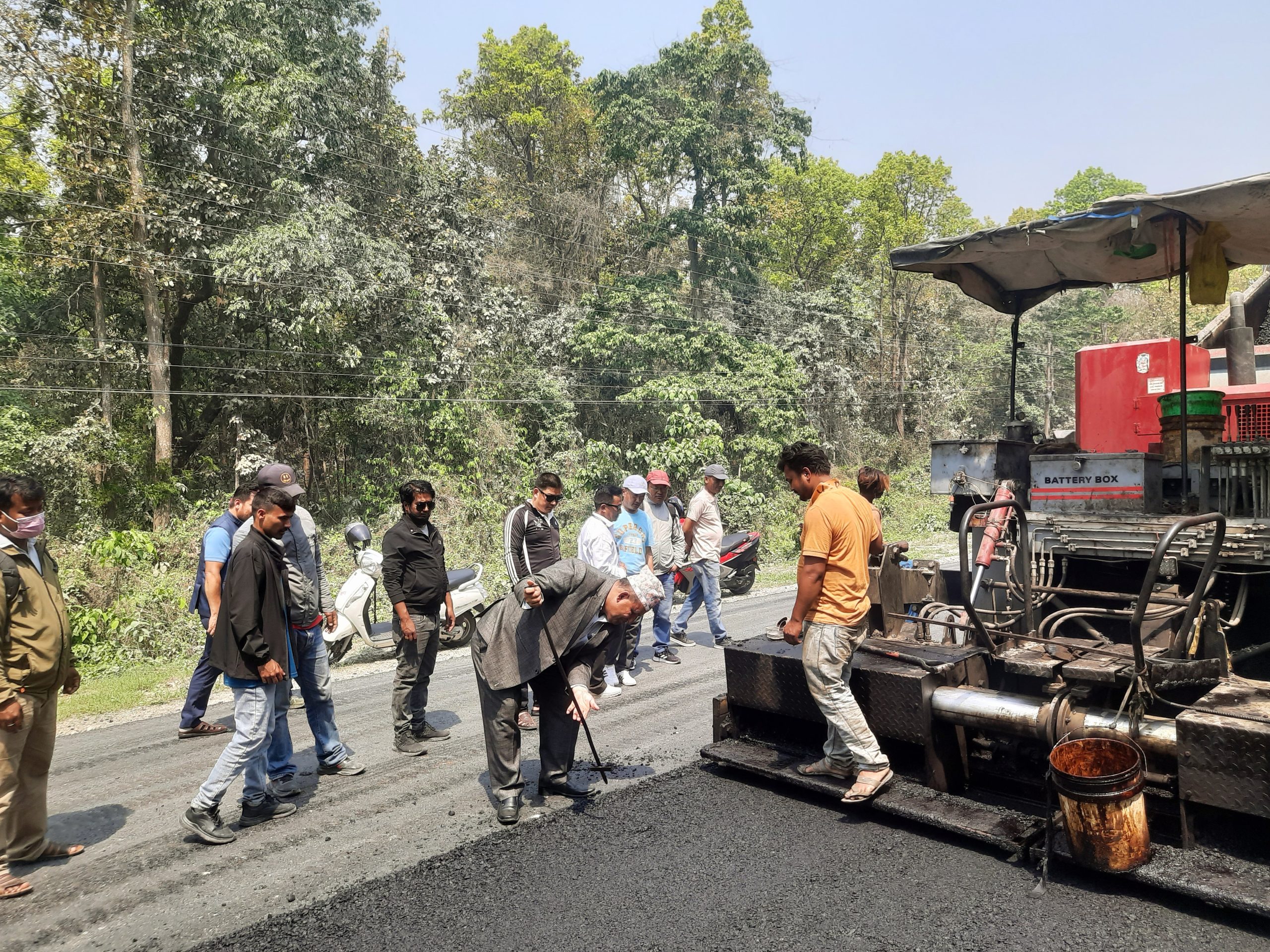 एकातर्फको बाँकी रहेको दुई किमी सडक मङ्गलवार पुरा भएको र बाँकी ५ सय मिटरको कालो पत्र चैतभित्र सम्पन्न हुने कन्स्ट्रक्सनका सिनियर ल्याव टेक्निसियन अनिल देवकोटाले जानकारी दिए ।