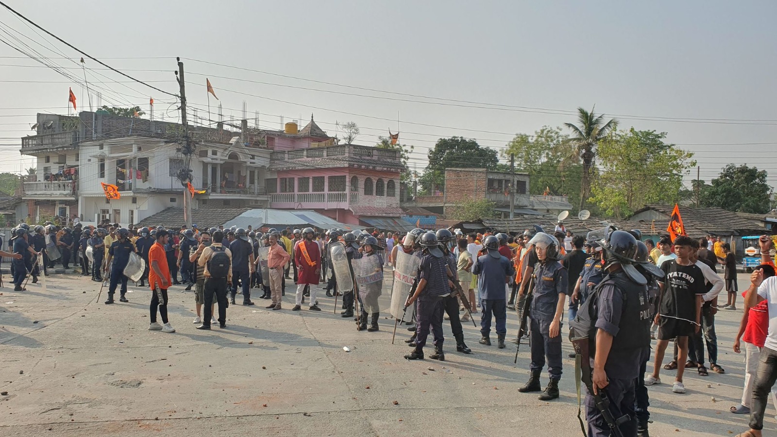 एकअर्काको विरोधमा उत्रिएकाहरुले ढुंगामुडा गर्दै प्रदर्शन गरेका थिए । दुवै पक्ष लाट्ठी, तरबारलगायतका घरेलु हतियारसहित झडप र प्रदर्शनमा उत्रिएको प्रहरीले जनाएको छ । प्रजिअ भट्टराईका अनुसार माहोल भड्किन नदिन ठूलो संख्यामा नेपाल र सशस्त्र प्रहरी परिचालन गर्नु परेको थियो । अहिले स्थितिलाई सुरक्षाकर्मीले आफ्नो नियन्त्रणमा लिइसकेको उनले बताए ।