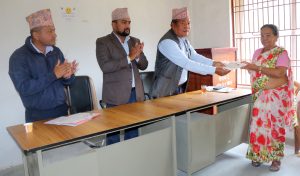 बिहिबार वडा नं. ८ मा राष्ट्रिय भूमि आयोग जिल्ला समिति मोरङबाट प्राप्त भएको १० वटा जग्गा धनीपुर्जा प्रमुख अतिथि नगर प्रमुख मोहनप्रसाद तुम्वापोले वितरण गरेका हुन ।