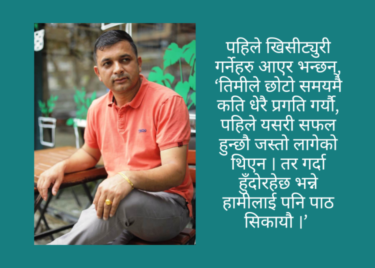 यतिबेला उनी एउटा सफल र अनुकरणीय व्यवसायी बनेका छन् । त्यसैले त पहिले खिसीट्युरी गर्नेहरु आएर भन्छन्, ‘तिमीले छोटो समयमै कति धेरै प्रगति गर्यौ, पहिले यसरी सफल हुन्छौ जस्तो लागेको थिएन । तर गर्दा हुँदोरहेछ भन्ने हामीलाई पनि पाठ सिकायौ ।’ यसो भनिंदिँदा उनको छाती गर्वले फराकिलो हुन्छ ।
