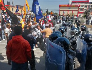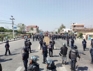 आन्दोलनकारी सुरक्षाकर्मीमाथि जाइलागेपछि दोहोरो झडप भएको हो । स्थितिलाई नियन्त्रणमा लिन प्रहरीले अश्रुग्यास प्रहार गरेको छ ।