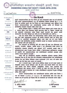 नगर सरकारको यस निर्णयलाई स्वागत गर्दै नक्सा पास प्रक्रियालाई अझ व्यवस्थीत, पारदर्शिता, सर्वसुलभ, जनमैत्री बनाउने कार्यमा सहयोग गर्छाै । विज्ञप्तीमा भनिएको छ “इन्जिनियरिङ् कन्सलटेन्ट सोसाइटीका अधिकाशं सदस्यहरु विभिन्न विषयहरुको विज्ञ भई धेरै समय देखि कार्य गरिरहेकोले उपमहानगरको कार्यालय भित्र बन्ने योजना÷आयोजनाको डिपिआर तयार गर्ने कार्यमा समेत निःशुल्क सेवा दिने छौं ।”