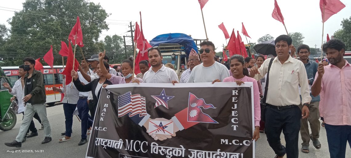 कार्यक्रममा राष्ट्रघाती एमसीसी सम्झौता खारेज गर ! , राष्ट्रघाति दलालहरू होसियार, राष्ट्रिय स्वाधीनताको रक्षा गरौ ! लगायतका नारा लगाईएको थियोे ।