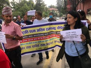 राष्ट्रपतिले सजाय माफी गर्न सक्ने अधिकारको दुरुपयोग गर्दै, संभावितआर्थिक चलखेल बारे गहिरो छानविनको मागगर्दै प्रर्दशनमा उत्रिएका दशान्ति समाजका संस्थापक सभापति कृष्ण पहाडी, सभापति रामकृष्ण बराल, सल्लाहकार उत्तम पुडासैनी, महासचिव रेनुका पौडेल लगायत ११ जनालाई प्रहरीले गिरफ्तार गरेको हो । उनीहरुलाई प्रहरी वृत्त महाराजगञ्जमा राखिएको छ ।