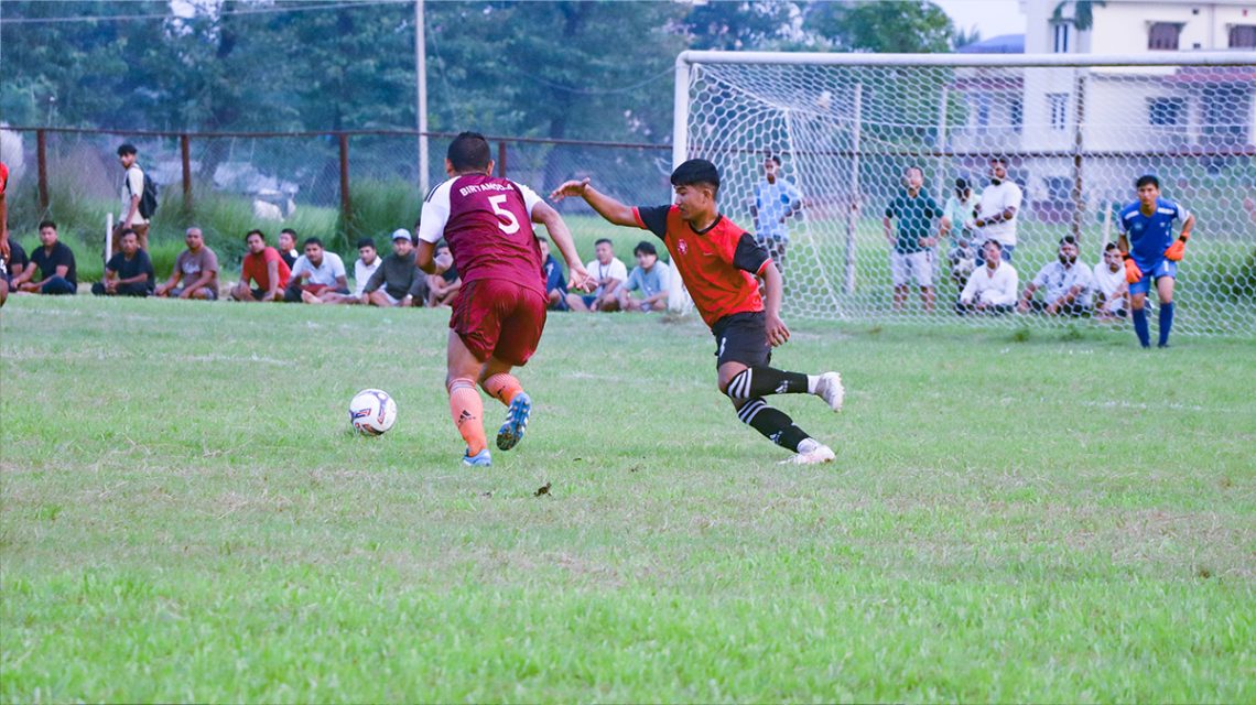 त्यसअघि भएको खेलको पहिलो हाफमा दुवै टिमले एक–एक गोल गरेका थिए । वडा नम्बर ३ का लागि खेल सुरु भएको १७ औं मिनेटमा सन्तोष राईले पहिलो गोल गरेर टिमलाई अग्रता दिलाएका थिए । त्यसको ३ मिनेट बित्न नपाउँदै बिर्तामोड–४ ले जवाफी गोल फर्काएपछि बिर्तामोड–३ को अग्रता धेरै बेर कायम रहन सकेन् । बिर्तामोड–४ का लागी पहिलो हाफको २० मिनेटमा बिशाल बस्नेतले जवाफी गोल फर्काएका थिए ।