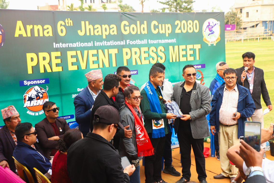 झापा गोल्डकपका वरिष्ठ उपाध्यक्ष बलराम कार्कीले स्वागत गरेको पत्रकार सम्मेलनमा झापा जिल्ला फुटवल संघका अध्यक्ष भगीरथ आले मामा, महासचिव गजेन्द्र पौडेल, कोषाध्यक्ष केदार गिरी, बिर्तामोड नगरपालिका वडा नम्वर ३का वडाध्यक्ष मदन बुढाथोकी, नेपाल पत्रकार महासंघ झापाका अध्यक्ष एकराज गिरी लगायतको सहभागिता रहेको थियो ।