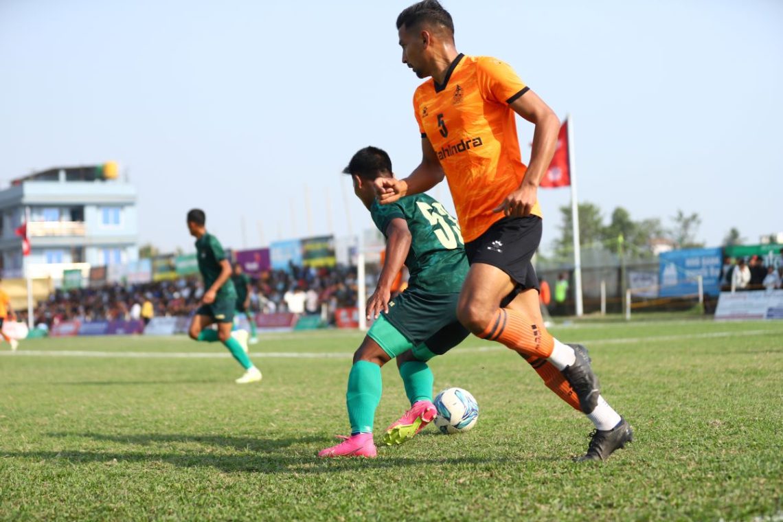 पहिलो हाफमा दुवै टोलीले रक्षात्मक खेल खेलका थिए । खेलको ४२औंँ मिनेटमा फोफोनाले दिएको क्रस पासमा एपिएफका अनिश महर्जनले गोल गर्न सकेनन् । ४७औँ मिनेटमा सर्ज सोङले पेनाल्टी एरियाबाट गरेको प्रहार बारको नजिकबाट बाहिरियो । ६९औँ मिनेटमा बुद्धिमान राईले पेनाल्टी एरियाबाट गरेको प्रहार फितलो भयो ।