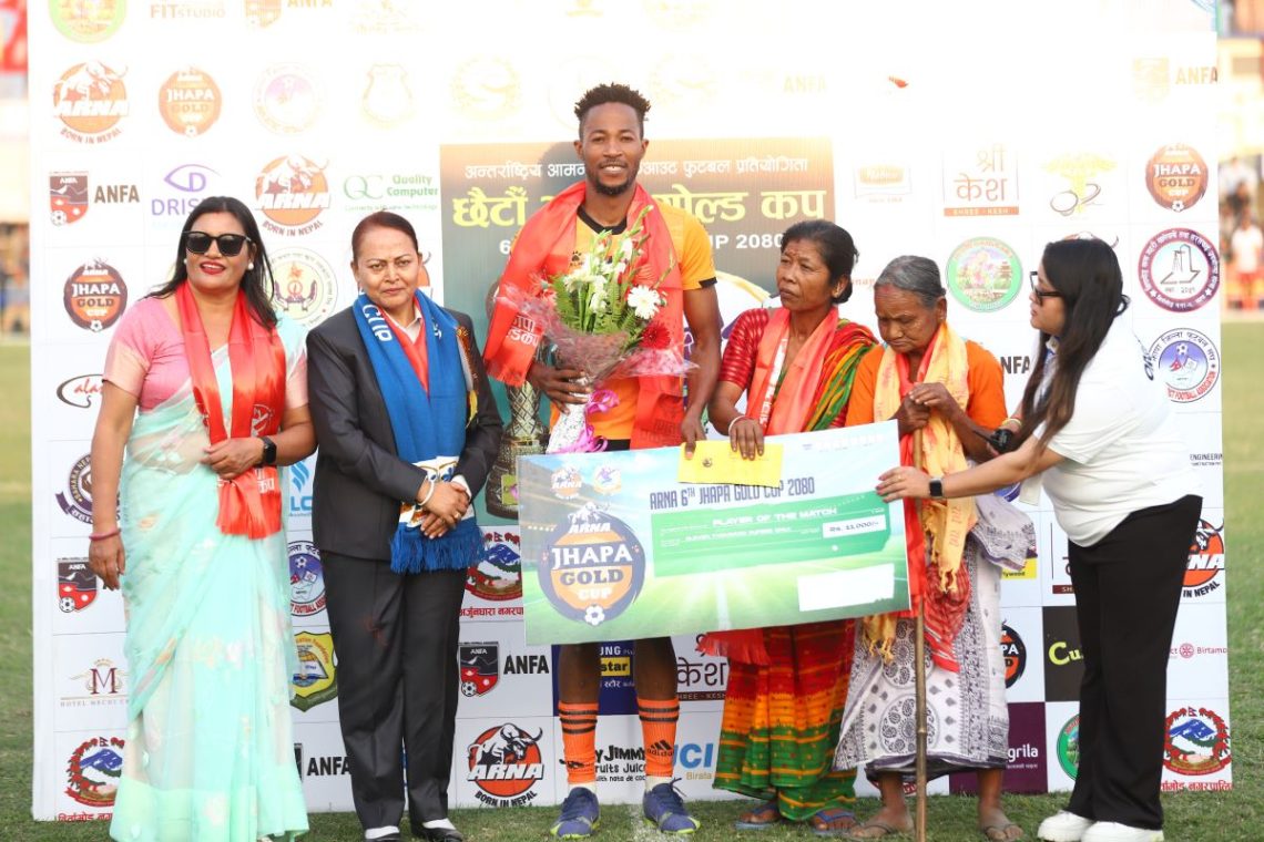 खेलको प्लेयर अफ द म्याच विजेता टोली सशस्त्र प्रहरीका फोडे फोफोना भए । उनले ११ हजार रुपैयाँ पुरस्कार पाए ।