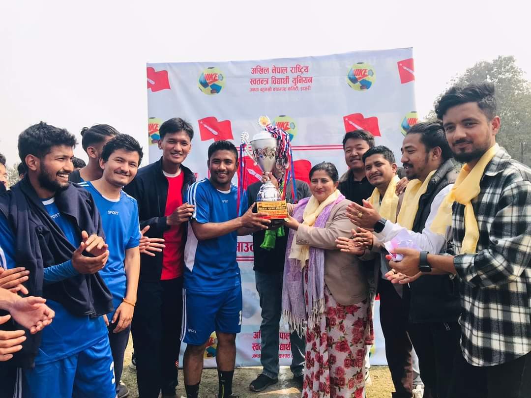 अखिल नेपाल राष्ट्रिय स्वतन्त्र युनियन (अनेरास्ववियु) जनता बहुमुखी क्याम्पसको आयोजनामा भएको खेलमा महेन्द्र क्याम्पसले उपाधि उचालेसगैं नगद २० हजार र प्रमाणपत्र हात पारेको छ । दोश्रो स्थानमा चित्त बुझाएको पुर्वाञ्चल इन्जिनियरिङ्ग क्याम्पसले नगद १५ हजार सहित प्रमाणपत्र हात पारेको छ ।