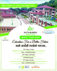 काठमाडौं / काठमाडौं वर्ल्ड स्कुल, जुन स्कुल शैक्षिक जगतमा चिरपरिचित नाम हो । छोटो समयमा नै आफ्नो छुट्टै पहिचान बनाउन सफल यस स्कुलले आधुनिक, वैज्ञानिक र प्रविधियुक्त शिक्षण पद्धति अपनाइरहेको छ ।