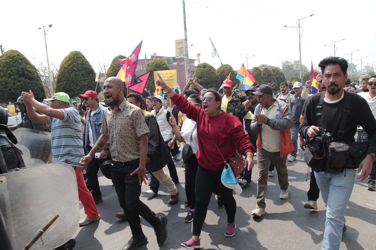 प्रदर्शनकारीले झुटा मुद्दामा पक्राउ परेका राप्रपा नेता र राष्ट्रवादी नेताहरूलाई तत्काल रिहा गर्न माग गरेका छन् ।